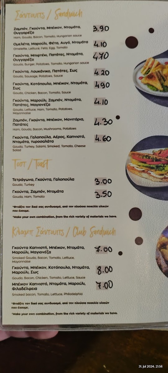 Δημιουργήστε τo δικό σας sandwich με τα αγαπημένα σας υλικά. Η τελική τιμή θα καθοριστεί βάσει των επιλογών σας