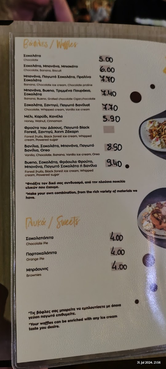 Δημιουργήστε τη δική σας βάφλα με τα αγαπημένα σας υλικά. Η τελική τιμή του προϊόντος θα καθοριστεί βάσει των επιλογών σας